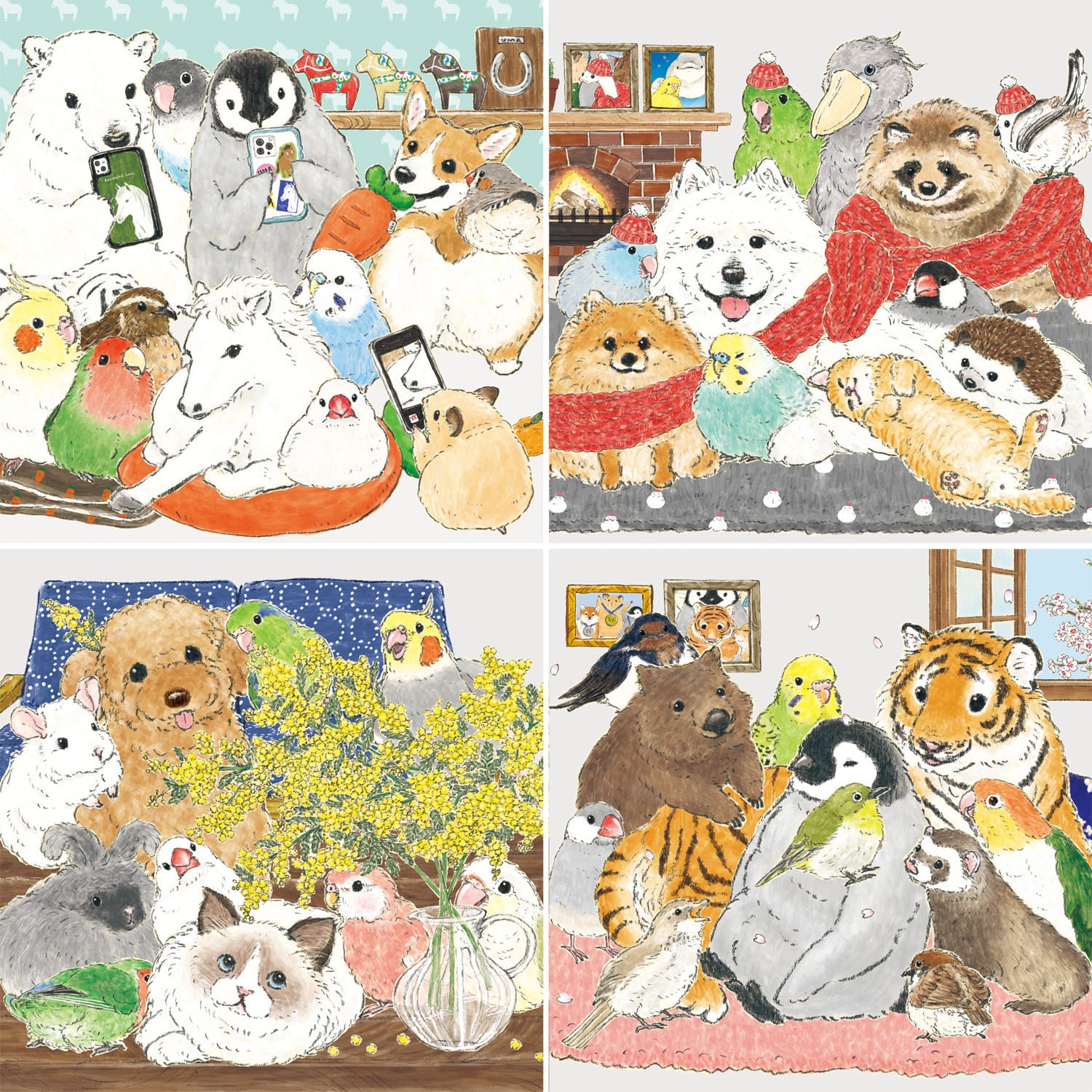 登場人物/ペンギン・ハムスター・文鳥・セキセイインコ・オカメインコ・コザクラインコ・ネコ・ハリネズミ・コーギー・シロクマ・マメルリハ・シュナウザー・キンカチョウ・アキクサインコ・ハスキー・ダックスフンド・サザナミインコ・トイプードル・リス・スズメ・うさぎ・チワワ・ボタンインコ・柴犬・ズグロシロハラインコ・コアラ・ポメラニアン・アヒル・チンチラ・パンダ・パグ・うずら・オキナインコ・ゴールデンレトリバー・ビーグル・シェルティ・デグー・トラ・モルモット・たぬき・シロハラインコ・フェレット・カメ・シマエナガ・ペキニーズ・レッサーパンダ・ヨウム・ウロコインコ・馬・ハシビロコウ・サモエド・ツバメ・ウォンバット・メジロ・ウグイス・マーモット・ミドリヒロハシ・フレンチブルドッグ・鳩・バーニーズマウンテンドッグ