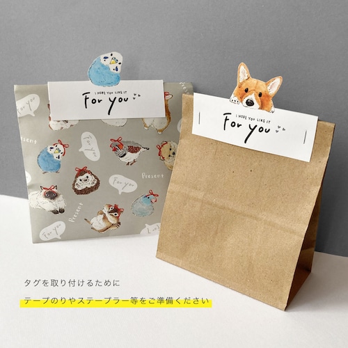 動物たちが、ちょこんと乗っている紙タグです。