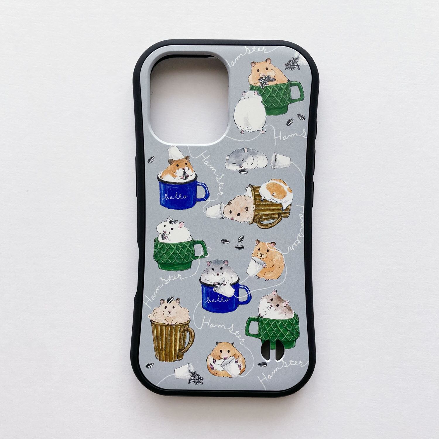 ハムスターがカップに入ったり糸電話で遊んだりしている、カバー型スマホケースです。糸電話がどこに繋がっているのか、目で追って楽しんで頂けたら嬉しいです(^^)