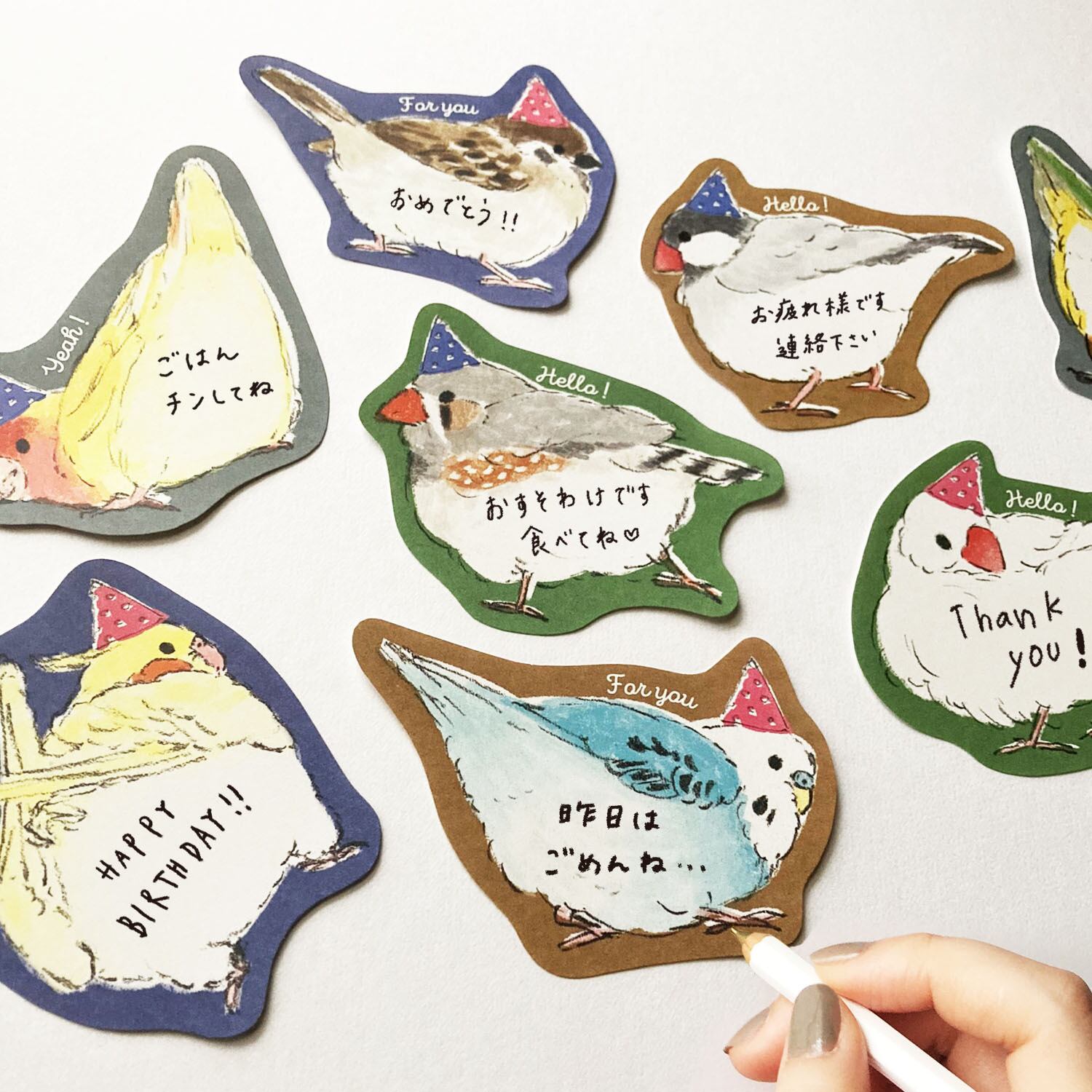 小鳥の素敵なおしりを集めて、メッセージカードにしました。