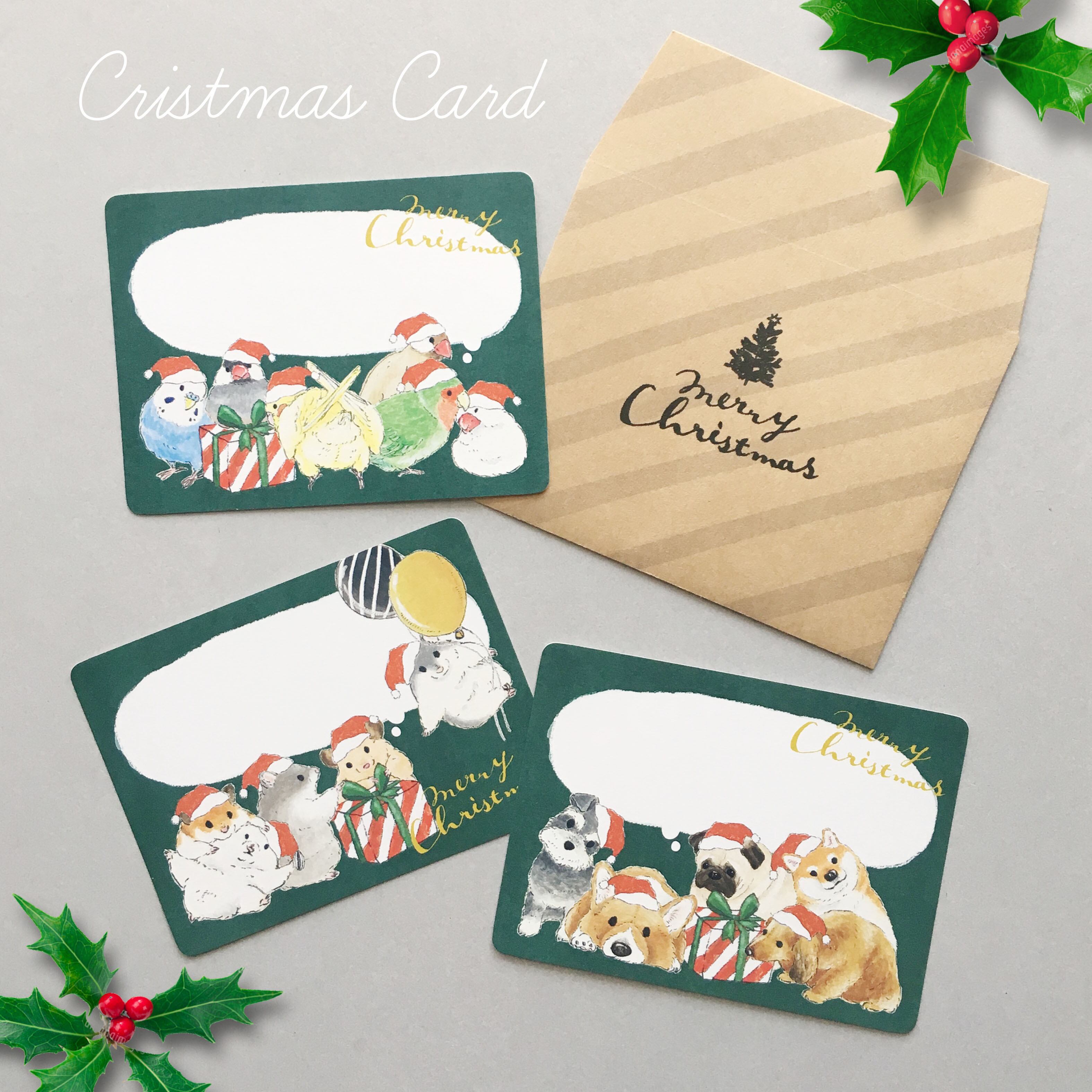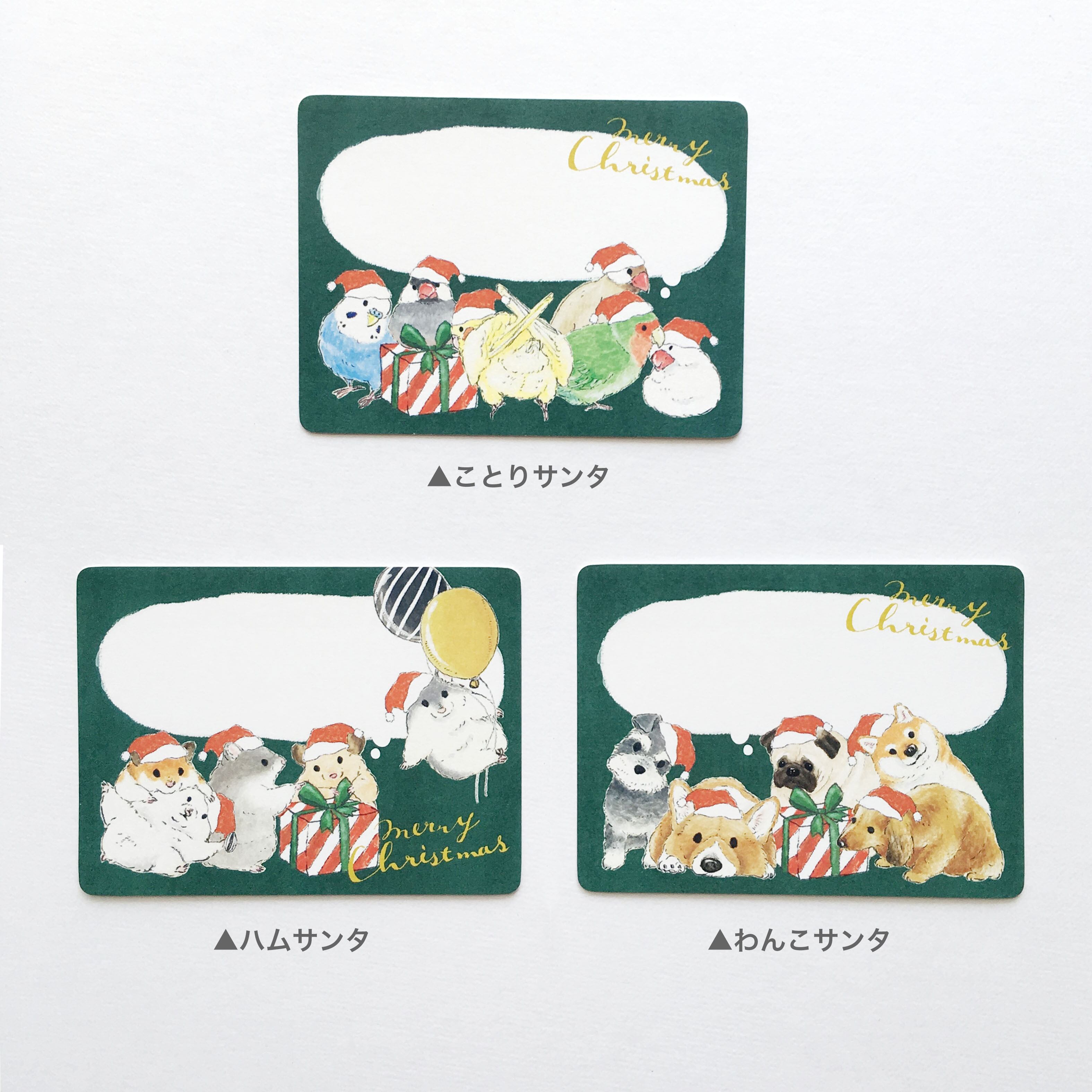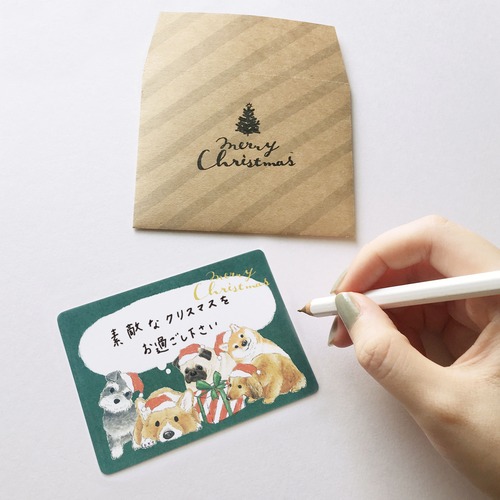 アニマル達がサンタに扮して、プレゼントを届けにやってきました。一生懸命運んでいる子もいれば、届ける気がなさそうな子もいます…使いやすい封筒付きのミニカードです。動物好きの方にはもちろん、ご友人やご家族にも是非ご活用下さい。封筒のデザインは共通柄となります。