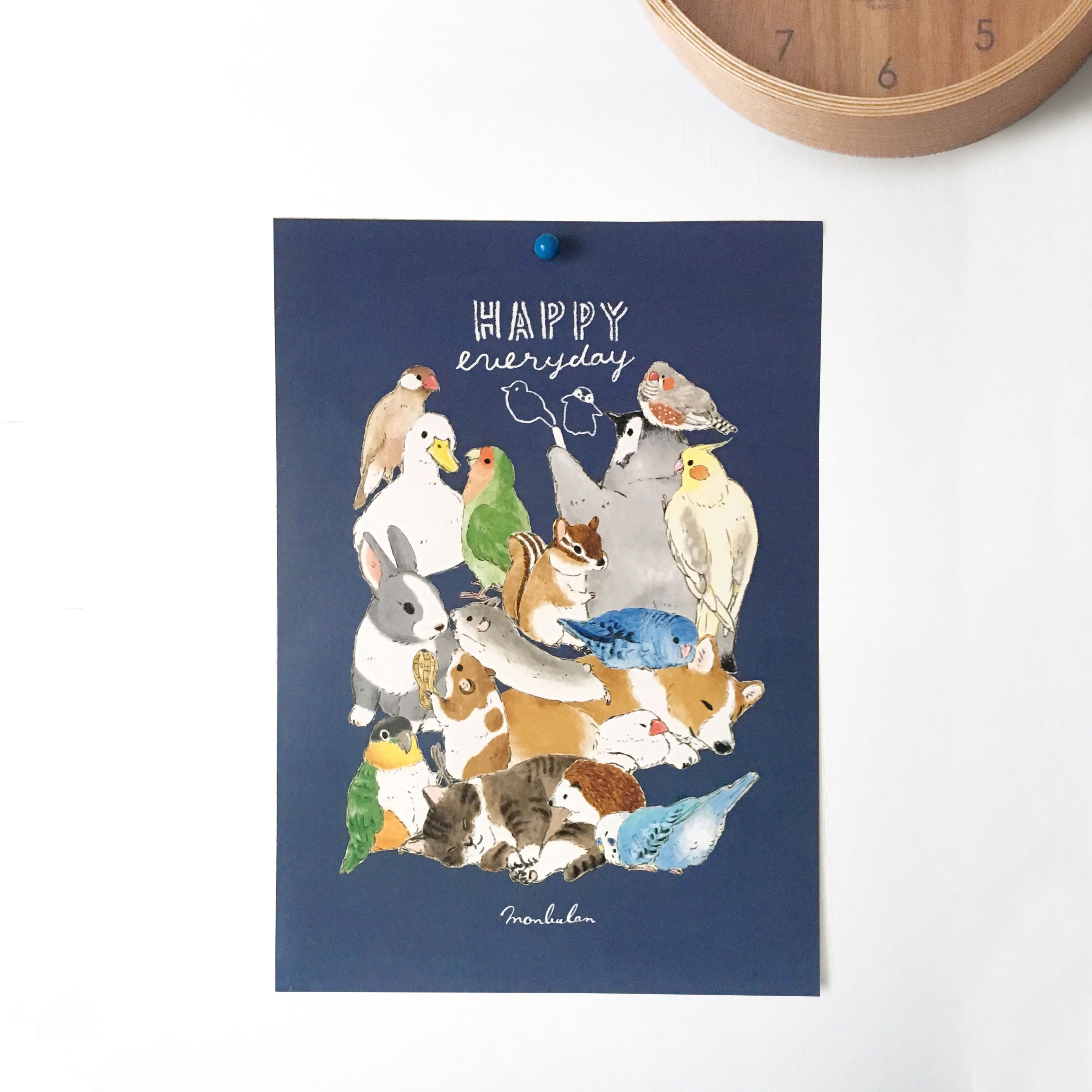 みんな仲良く集まって、眠ったり、抱きついたり、おしゃべりしたり、見つめ合ったり、落書きしたり…動物満載のミニポスターです。