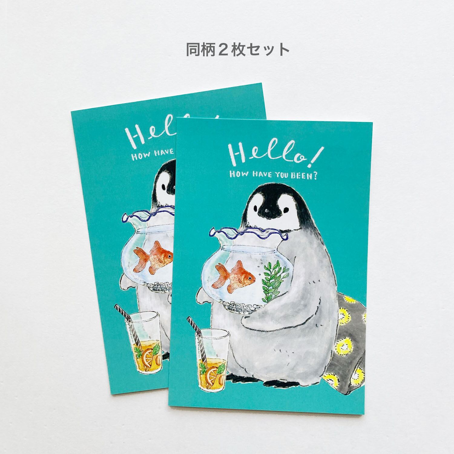 金魚鉢を抱えたキメ顔のペンギンさん…夏のお便りにぴったりなポストカードです。ペンギン好きの方にはもちろん、ご友人やご家族にも是非ご活用下さい。