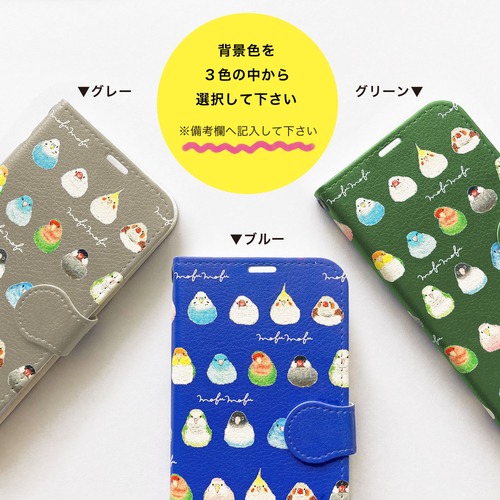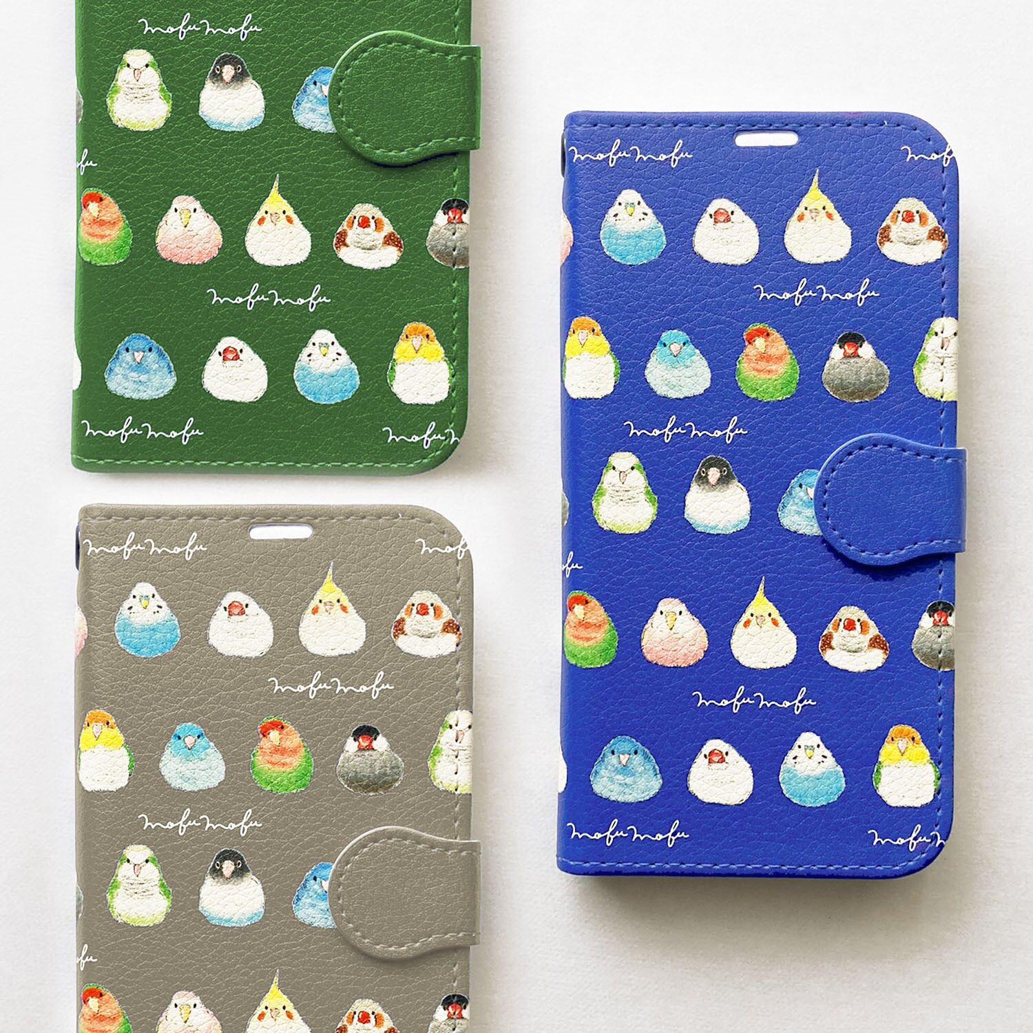 まるくてもふもふしている鳥さんの手帳型スマホケースです。