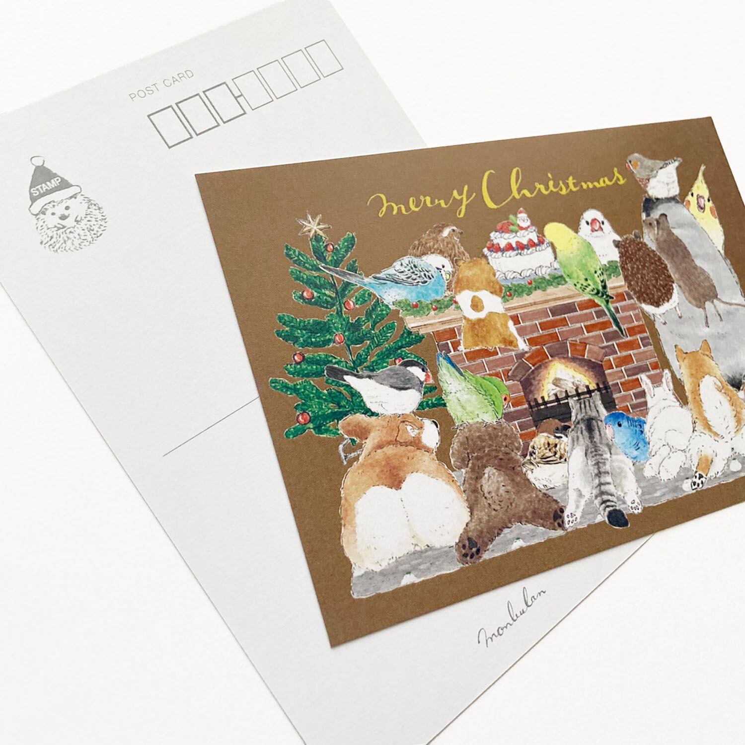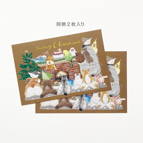 暖炉に集合したアニマル達をクリスマスカードにしました。