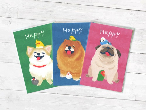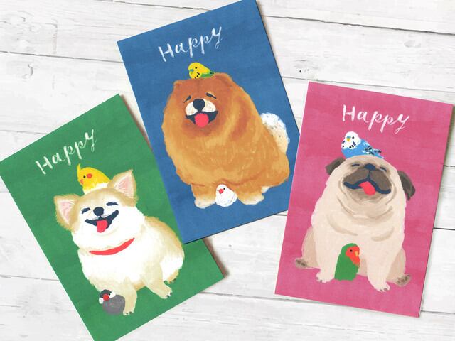 笑顔のわんこと小鳥たちのポストカード第2弾です。