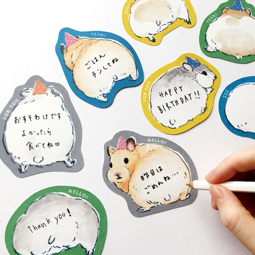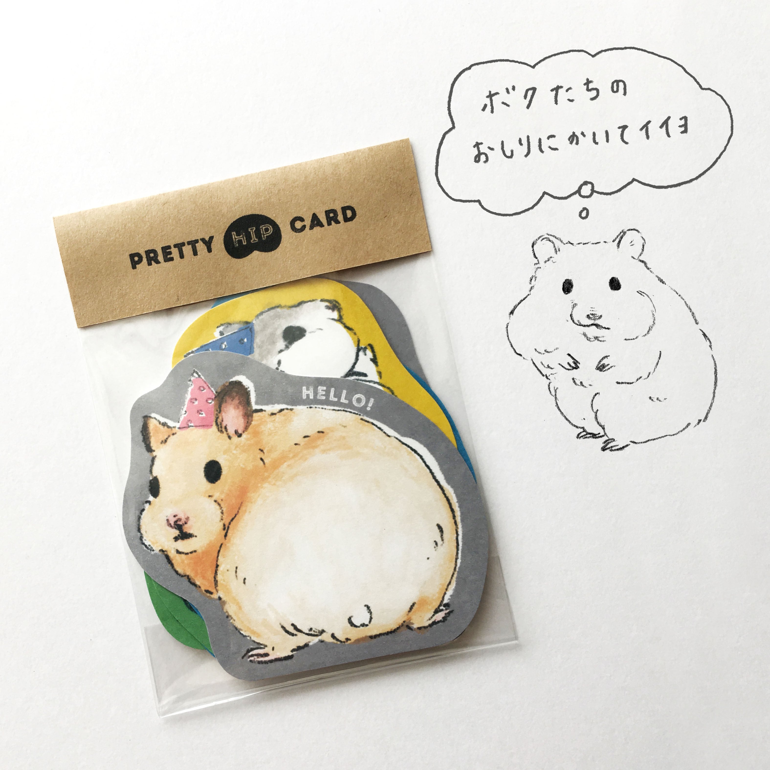 ハムスターの素敵なおしりや背中を集めて、メッセージカードにしました。色々なハムケツにメッセージを書いてみませんか?普段言いにくい事もコレなら伝えられるかもしれません…ご家族やお友達への伝言や、ギフトに添えたり、普段使いにも是非!